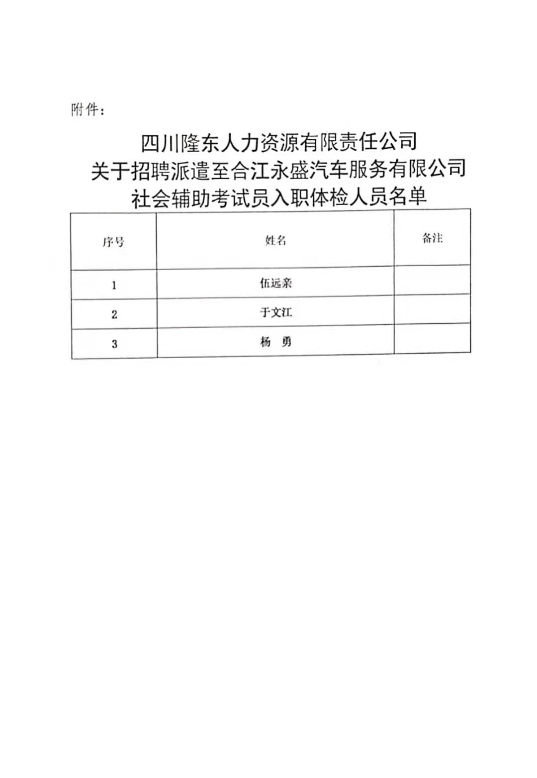 關(guān)于錄用派遣至合江縣人民法院勞務(wù)工作人員的公示