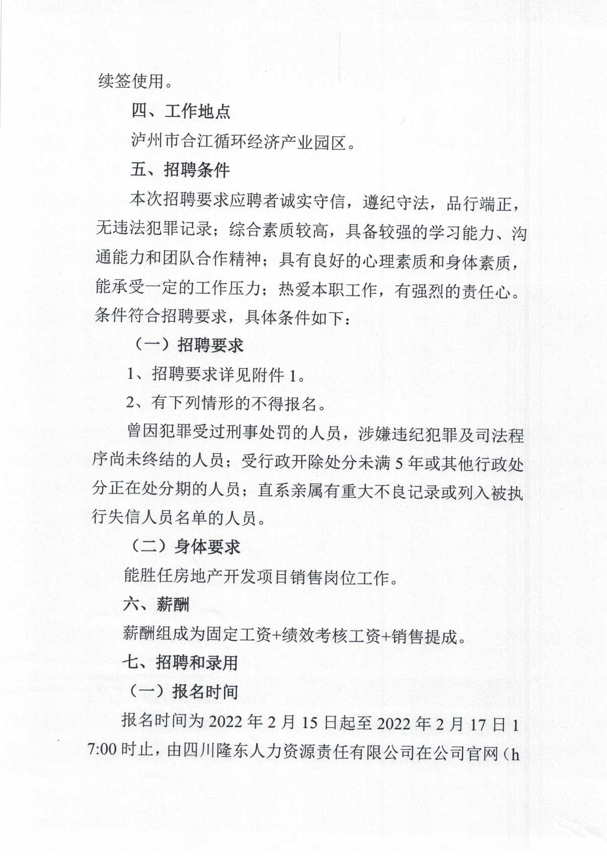 關(guān)于招聘派遣至合江縣臨港工業(yè)開發(fā)投資(集團)有限公司房地產(chǎn)開發(fā)項目銷售人員的公告