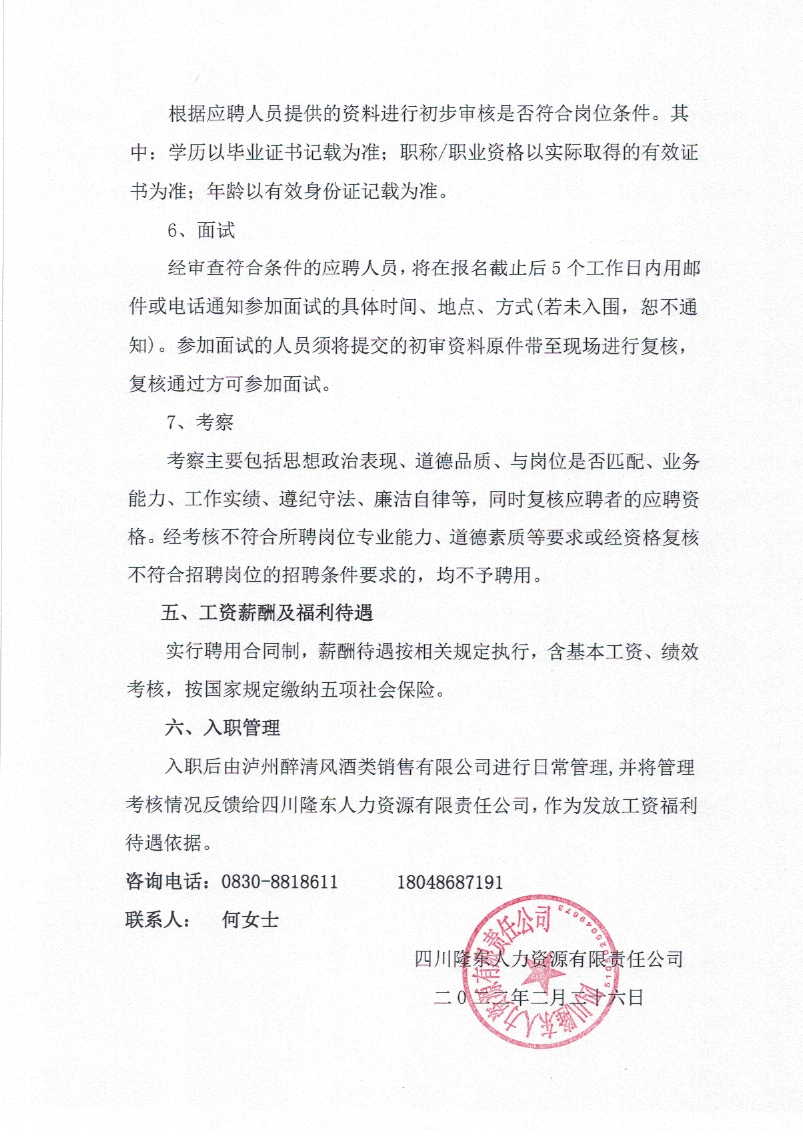 關(guān)于招聘派遣至瀘州醉清風(fēng)酒類銷售有限公司勞務(wù)工作人員的公告