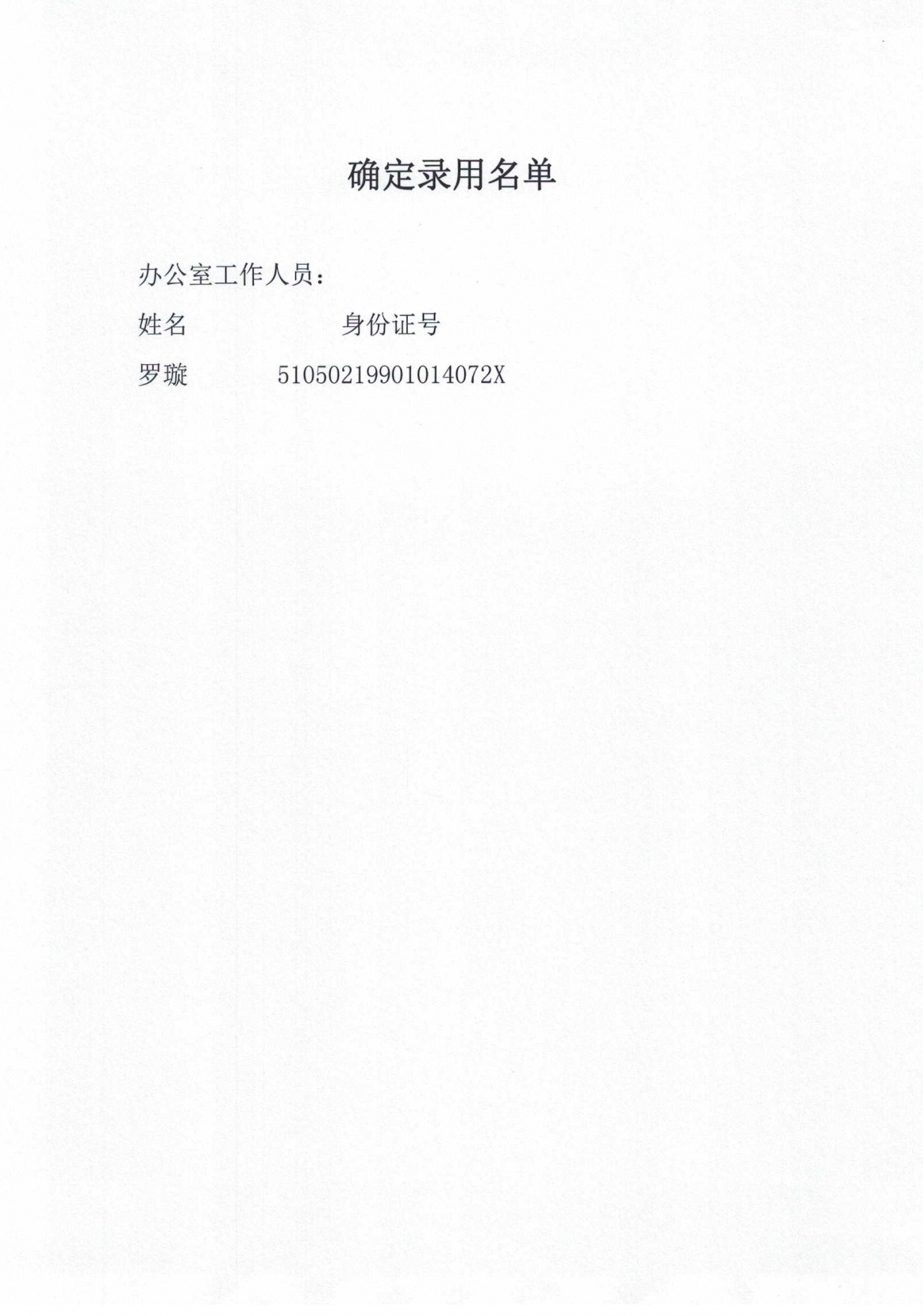 關(guān)于錄用派遣至瀘州市市政公用事業(yè)服務(wù)中心辦公室人員的公示