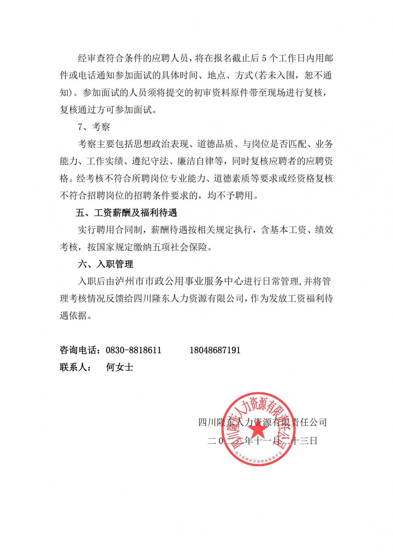 關(guān)于招聘派遣至瀘州市市政公用事業(yè)服務(wù)中心勞務(wù)工作人員的公告
