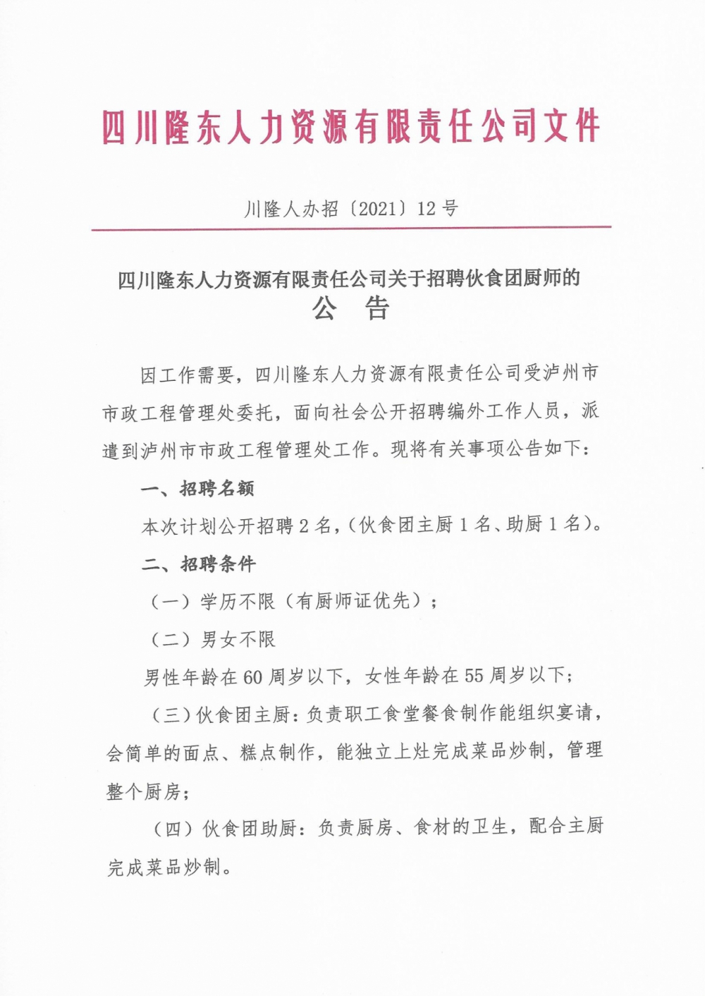 關(guān)于招聘伙食團(tuán)廚師的(公 告)